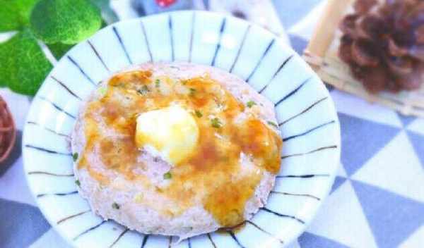 食材:鵝蛋1枚、豬肉泥30克、鹵肉湯15克、鹽1克、雞精0.5克、料酒3克、花生油4克、蔥末少許、胡椒粉0.5克