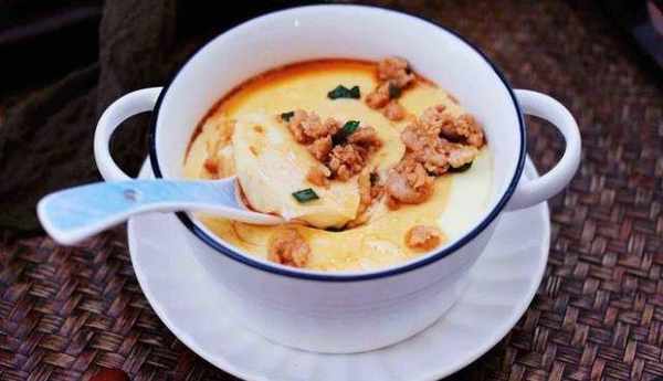 16、把炒熟的肉末和湯汁撒到蒸熟的鵝蛋羹上即可