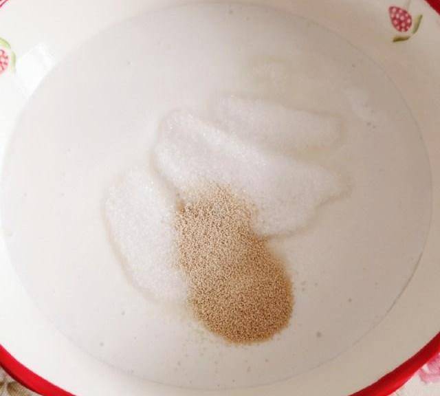 第4步、打好的大米漿倒入容器裡,加入白糖和酵母,攪拌均勻,蓋上蓋子進行發酵。