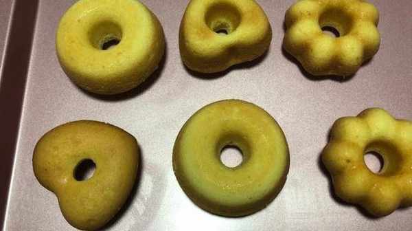 5.甜甜圈的形狀最好是事先抹上食用油或黃油,之後再烤,在臉上放入有張力的裱花袋,切開,塞進模子裡,8分鐘,9分鐘就足夠瞭,因為烤瞭之後蛋糕會鼓起。