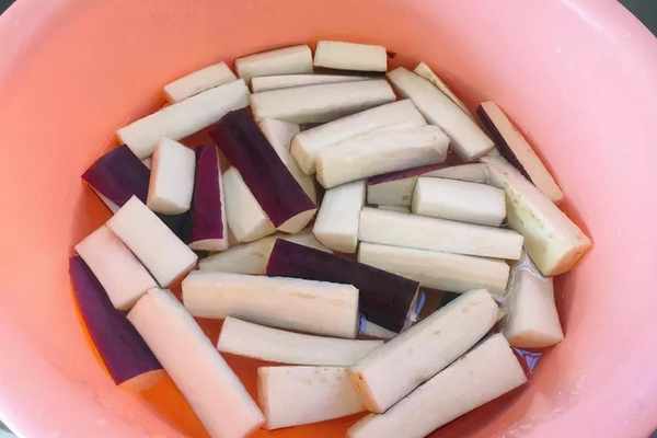 為瞭防止茄子 氧化變黑,我們把茄子放到清水裡浸泡5分鐘