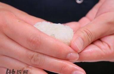 將壽司米飯用手捏呈長條墩狀