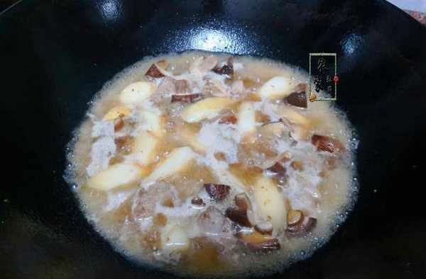 10、蓋上鍋蓋持續的燜煮鍋裡的食材,此時我們需要做的就是耐心的等待鍋裡的食材熬煮熟透的這個過程。