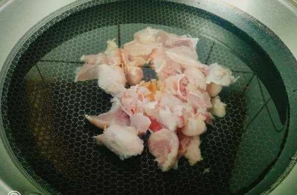 1. 雞腿清洗幹凈,撕去外去皮切成塊;雞肉是肉類中蛋白質的含量最高的,但雞皮中的脂肪含量較多,減肥的朋友隻需將皮去除就可以放心的食用瞭。