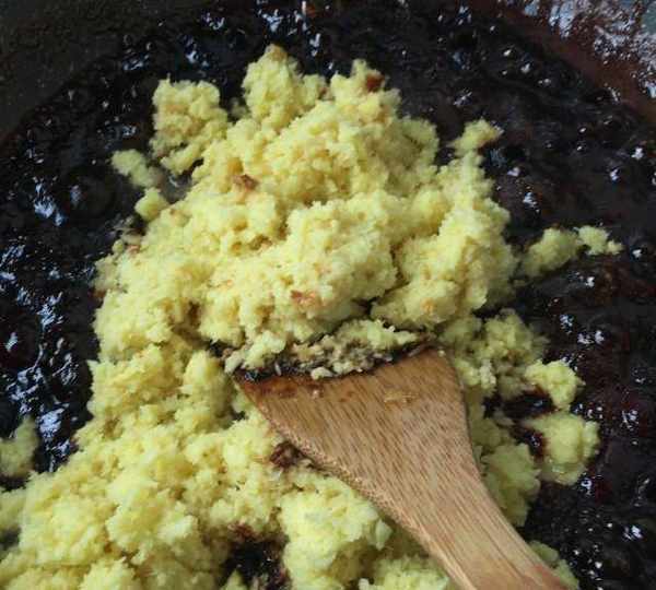 第13步、不停攪拌至幾乎沒有水分的時候。