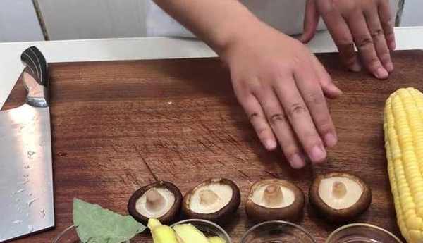 今天我們做一個非常有營養高顏值的玉米排骨湯,本期主要食材有排骨,提前拿清水浸泡15分鐘去除血水,玉米、香菇、料酒、醋、生薑。還有一些常見的香料,把玉米切成兩三厘米的塊,香菇上面打上一個十字花刀,起鍋燒水,水開下入排骨,加入料酒、薑片,大火煮開焯水一分鐘打去浮沫,撈出放涼。