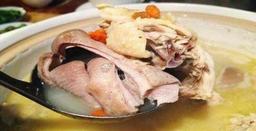 4.焯好水的豬肚和雞放到砂鍋裡,加入高湯,加生薑,大蔥,黨參,食鹽,紅棗,枸杞味精一起,先大火燒開,後轉小火慢燉2個小時。