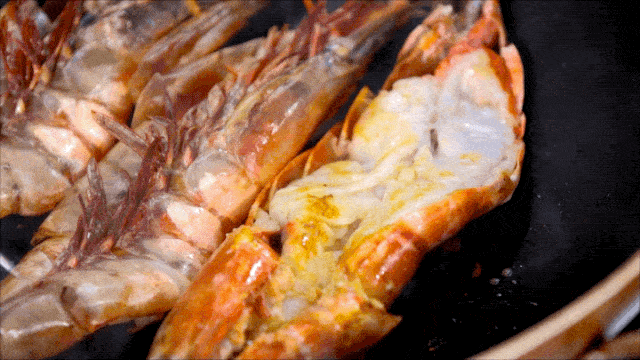 鍋中放入橄欖油,將蝦肉朝下放入鍋中煎制後取出備用。
