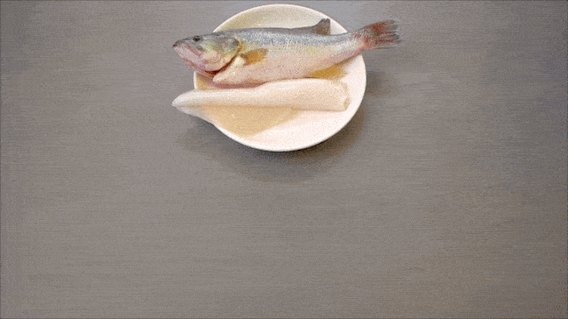 將鱸魚魚骨取出,蝦開背從中間剖開攤平。