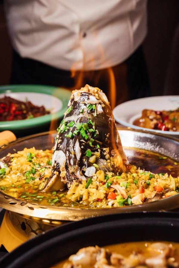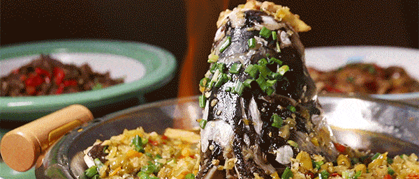這道上桌會冒火的魚頭,是湘菜館裡的必點菜,也是檢驗一個湘菜館是否正宗的標準,看似簡單,其實從食材新鮮程度、到配料選擇、再到蒸制時間都大有講頭,沒點經驗根本不行。