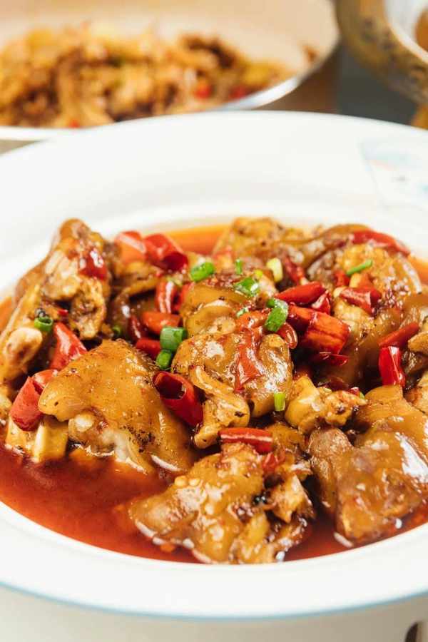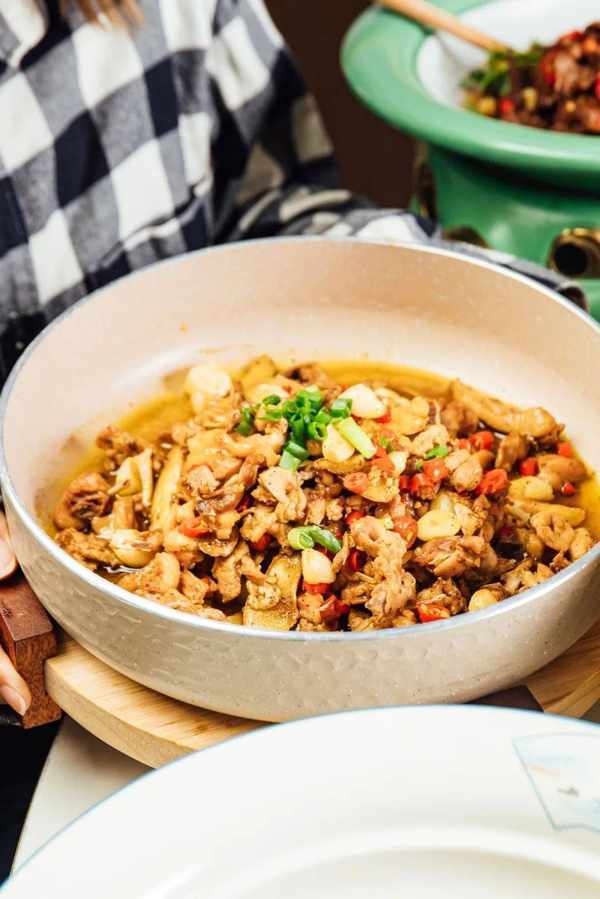雞肉經過小火慢燜之後,肉質依舊保持著最初的鮮嫩,完全不會柴!「第5代湘菜」的做法,雞肉切成小塊,不僅更加入味,也十分容易入口。