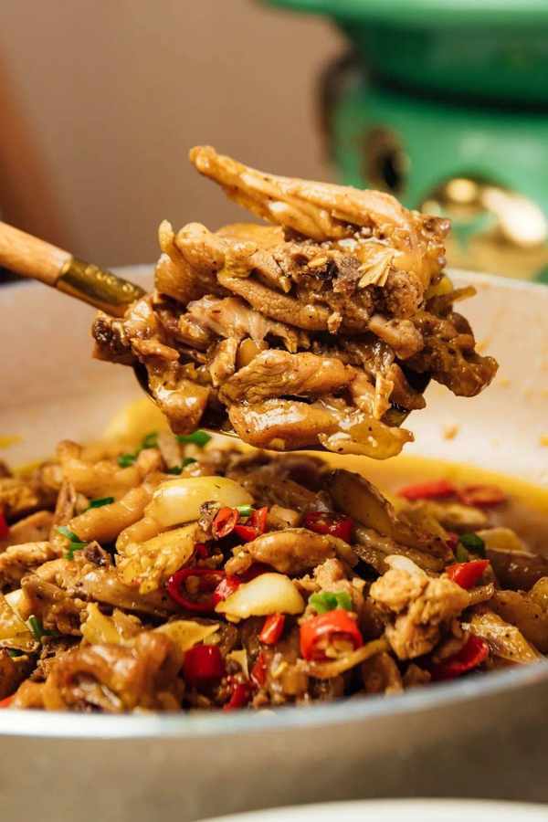 舀上一勺,濃鬱的湯汁裹挾著鮮嫩的雞肉,辣椒的香味早已容易雞肉的每一處紋理中,開胃又下飯!