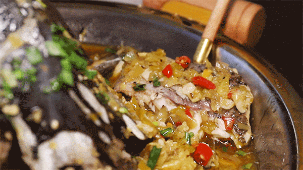 白嫩的魚肉浸過汁水,撥開辣椒,嬌羞地露出真面目!熱辣鮮香直沖天靈蓋!根本停不下筷子!魚唇、魚腦、魚眼逐個入口,感受軟綿鮮嫩的膠質,那叫一個香!