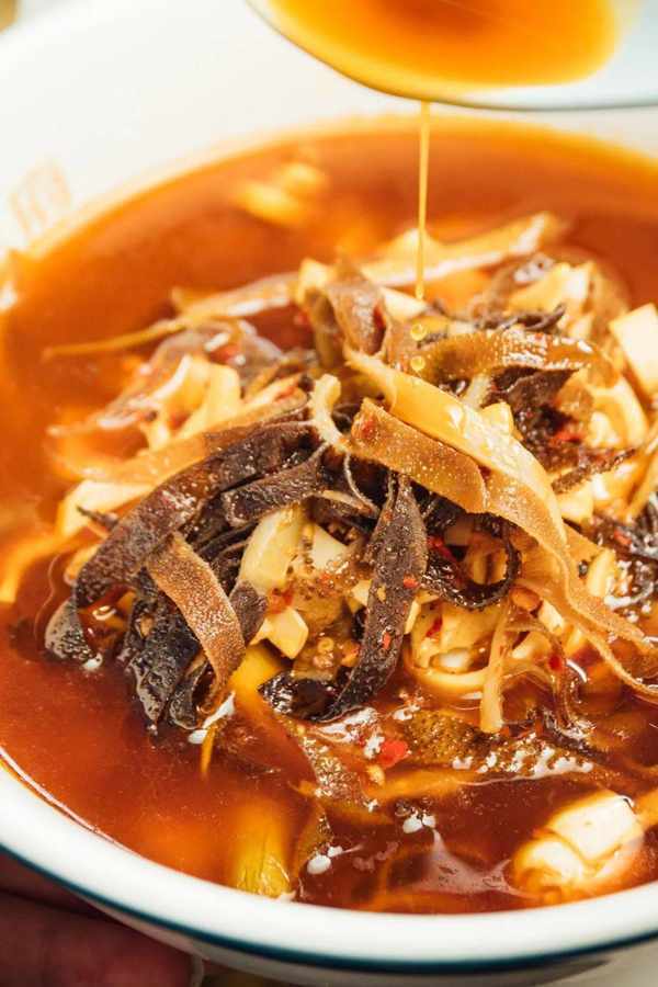 毛肚的脆爽,應該沒有一個地球人能夠拒絕吧!毛肚的每個尖尖都沾滿瞭紅油,送入口中,吃起來卜卜脆,湘味十足!
