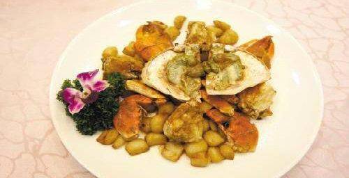 豆醬焗蟹,是用當地的大肉蟹,斬剁成小塊,用當地普寧豆醬塗在蟹肉上面,然後放到蒸鍋裡面用中火蒸5-8分鐘就可以出鍋吃瞭。豆醬焗蟹口感鮮美,味道微甜。是當地的特色名菜。