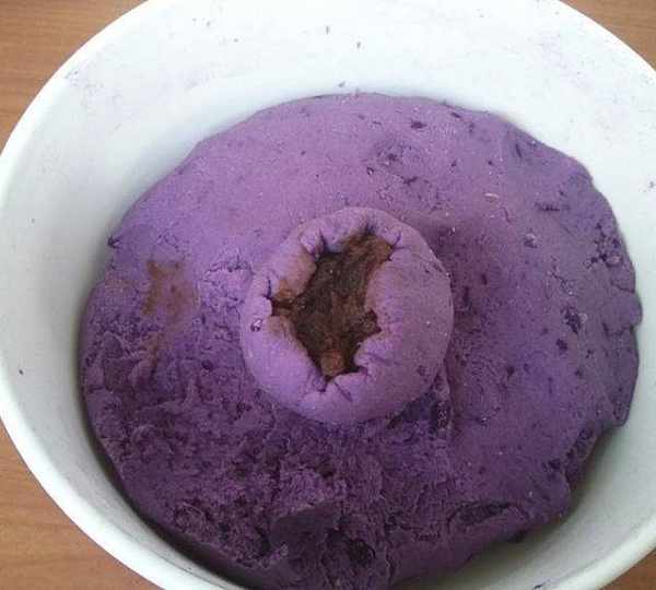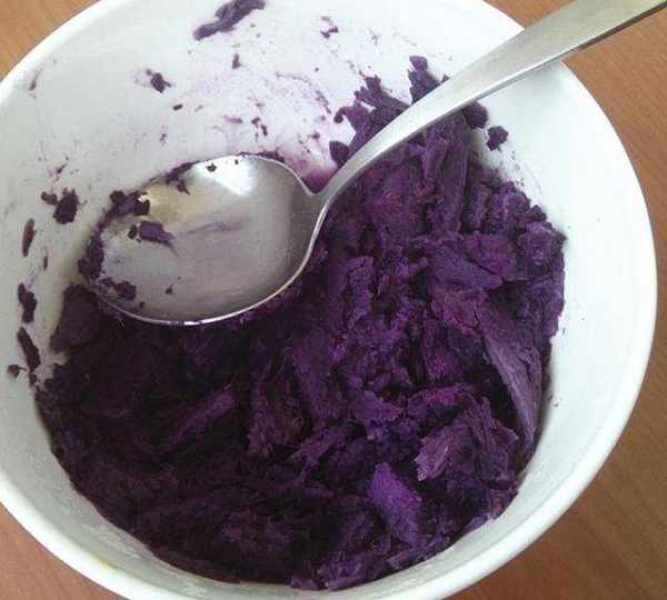 第1步、紫薯洗幹凈蒸熟,去皮後壓成泥。