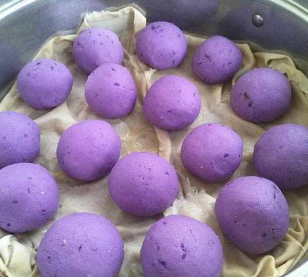 喜歡上瞭黏豆包,各種搭配。不同的餡料,不同的面皮,哪一款都很不錯。這款是用紫薯與糯米粉和面,包入自己做的豆沙餡,蒸熟的黏豆包漂亮又好吃。紫薯不但漂亮,而且營養豐富,參與做黏豆包,在提升顏值的同時,也增加瞭黏豆包的營養。豆沙餡不用多說,自己做的,幹凈衛生,物真質優,放心享用。