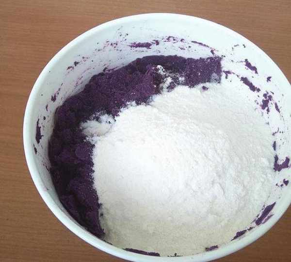 第2步、紫薯泥中加糯米粉、少許小麥粉。