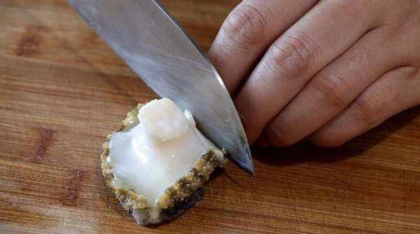 2、類似鮑魚一定要摘去鮑魚胃,然後表面打上花刀,蟶子取掉邊邊角角的黑線 。