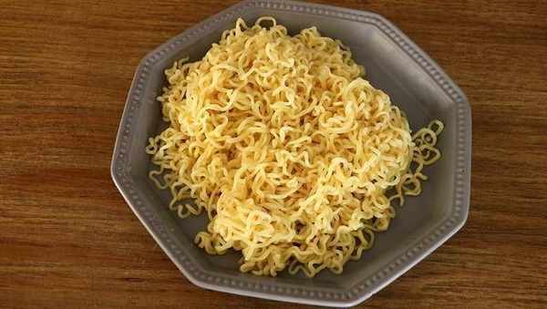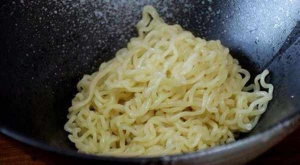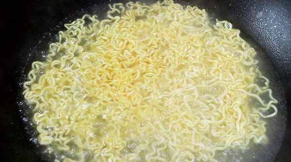 做法:1、鍋中加水燒開,扔入兩個方便面面餅,煮熟後撈出來,提前準備一碗涼水,泡面想要勁道一點,就過一下涼水,瀝幹水後放入另一個碗中備用。