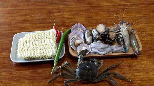 食材:方便面、各種海鮮(比如八爪魚、蝦、螃蟹、貝殼等)