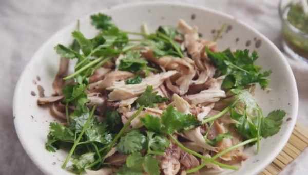 你可以整隻雞搭配的醬汁上桌,或者如果你想要吃相更加優雅的話,也可以把這隻雞拆掉。因為這個雞已經烤的非常熟爛瞭,它身上的肉也是很好拆的。不過雞肉水分還是非常足的,先把雞翅、雞腿這些比較大件的部分拆掉,然後直接用手撕,就可以把雞肉完整的撕下來。剛才盤子的香菜,你也可以直接撕成小段,和雞肉拌在一起,如果你想要加更多蔬菜的話,可以加些生菜碎,或者是黃瓜絲都很不錯。