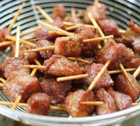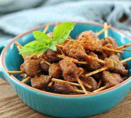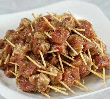 小貼士-牙簽用清水浸泡一會,是為瞭防止在炸制肉串的過程中變黑 調味料可以根據自己的口味添加 炸制肉串的時間也會根據肉塊的大小而不同,所以請按實際情況掌握時間
