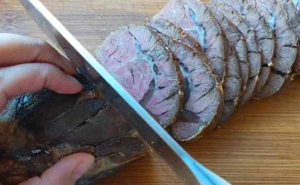 【步驟四】醬牛肉做好的第三個要點,就是煮好的醬牛肉不要長時間地放在醬汁裡浸泡。這樣牛肉的內部組織,進入料汁的水分之後,口感自然就會松散不緊。煮好後的醬牛肉拿出鍋放涼,然後用保鮮膜卷起來,冷藏一個晚上,保鮮膜緊緊地包裹著牛肉,再加上冰箱的冷藏,可以讓牛肉定型緊實,口感會更有韌性一點。