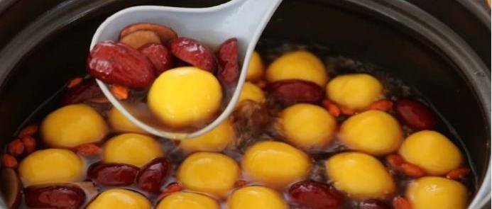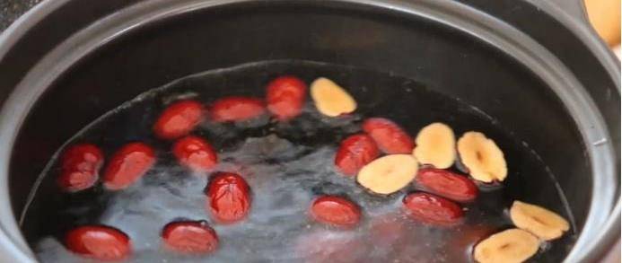 6、在砂鍋裡面放上適量的清水,然後將紅棗放進去,再加上準備好的一勺紅糖,用勺子攪拌均勻,用大火燒開,鍋中水煮開之後放入南瓜丸子,小火慢煮,一直將丸子煮熟。在煮的過程中要用勺子攪拌一下,防止它粘底,煮到丸子浮起來時撒上一些枸杞,一道美味的紅棗南瓜丸子湯就完成瞭,非常美味,你喜歡嗎?