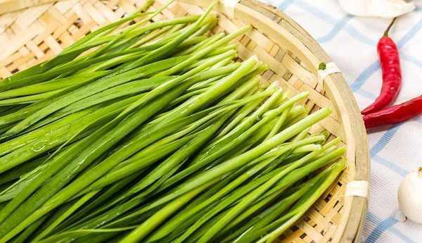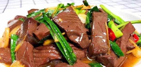 1.立春就要到瞭,韭菜在春天長得最快,割瞭一茬又長出一茬,這時候的韭菜也是最鮮嫩的,所以立春也要多吃。準備一把新鮮的韭菜,放在清水裡清洗幹凈,然後用刀切成長段 。還準備一碗鮮鮮的豬血,把豬血切成厚一點的粗條,再來一些薑片和蒜末,三顆紅辣椒。