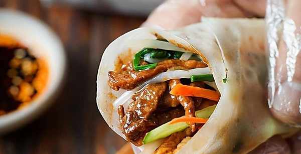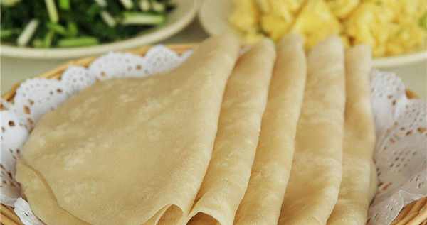 2.接著準備一個不粘鍋,如果您傢裡有電餅鐺 那就更方便瞭,把鍋預熱,再把一片面皮放進去烙,看見起泡之後再翻另一面來烙,大概20秒的時間就可以烙好一張瞭,每一張面皮都是這樣操作。在做上一些土豆絲、黃瓜絲這樣的配菜,一張春餅卷上一點土豆絲,春卷就做好瞭,非常的美味,立春可以做給傢人吃哦!