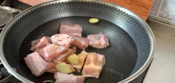 1.蘿卜含有較高的營養價值,可以潤腸通氣、補充維生素C等等,立春將至,要多吃一些蘿卜調養身體。今天給大傢分享最常見的蘿卜燉排骨,準備新鮮的豬排骨,洗幹凈之後冷水下鍋,加入生薑和兩勺料酒去腥,讓排骨焯水兩分鐘。