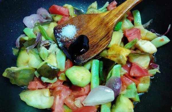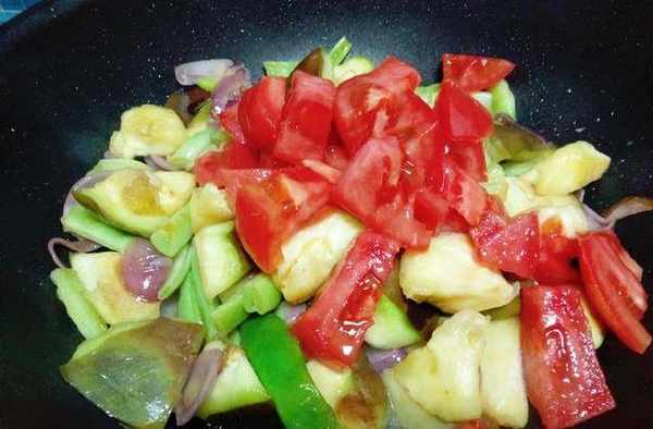 圓茄子、四季豆、西紅柿、蔥、蒜、螺絲椒(或燈籠椒)。