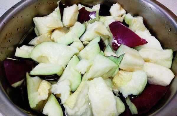 1、茄子掰/切完後一定要及時的入水浸泡,一是防止氧化變黑,另外也可以減少茄子的吸油。