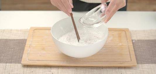 第2步就是和面瞭。準備好熱水,要註意並不是涼水,也不是溫水,當然也不是開水。那究竟是什麼樣的熱水呢?其實就是微微有燙手感,大約五六十度左右就可以瞭,這個水溫能讓面粉部分糊化,用這樣的水潑出來的面,烙出來的餅更加柔軟不發硬,不像開水那樣直接把面粉完全糊化。