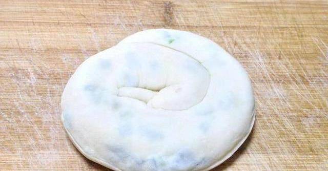 接下來就是將弄好的面餅順著一邊卷起來,切記不可卷的太近,影響層次感,防止粘連。然後將卷起來的面餅分成幾個面劑子,切口要捏住按扁平輕輕的打開兩面都要改房子層次厚度不均勻,保持用中小火烙熟就可以瞭。