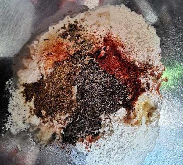 第5步、一杯面粉中加入各種調料和白醋。