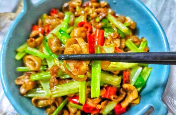 【烹飪食材】:肥腸二斤、紅辣椒3個、幹紅辣椒3個、芹菜4根、薑蒜適量、八角適量、桂皮適量、香葉適量、花椒適量、食鹽少許、生抽少許、蠔油少許。