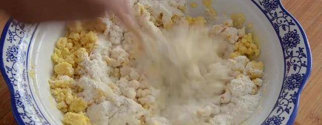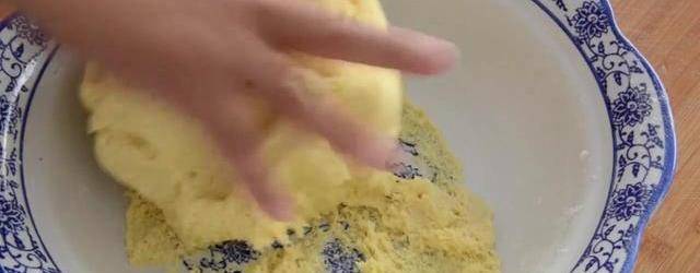 今天用洋蔥做好吃的,碗中加入100克的玉米面,用開水燙面。攪拌成這種顆粒狀,放一邊晾涼備用。現在開始切洋蔥去頭去尾。把洋蔥切成4份。把洋蔥放到清水裡浸泡兩分鐘,玉米面中加入三克的酵母粉,加入一勺白糖,打入一個雞蛋,攪拌均勻。再少量多次地加入200克面粉。到沒有幹面粉揉成光滑的面團。把洋蔥拿出來切碎。切好以後放到碗中,加入一勺鹽,醃一下水分。