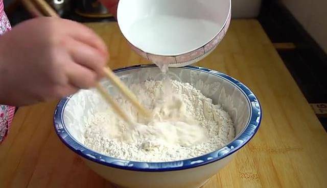 今天給大傢分享一個泡泡小油條的做法,手不沾面就能做好。首先在盆內倒入300克面粉加三克酵母,7克食用鹽,5克白糖,倒入溫水300毫升,水和面粉的比例是1:1。一直攪拌到像這樣的黏稠狀,沒有面粉顆粒放在溫暖處醒發至兩倍大。