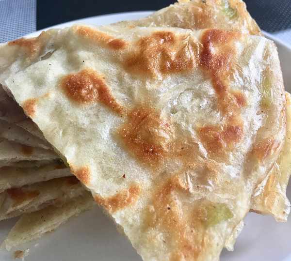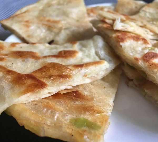 還沒烙好的時候,蔥油餅的香味就讓人忍不住流口水瞭,比蔥花餅還要香。