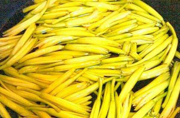 小竅門:黃花菜焯好之後,一定要在先泡在涼水中一段時間,因為隻有這樣才能去掉黃花菜當中所含有的秋水仙堿,才能保證我們在食用時不會造成食物中毒。另外在挑選黃花菜時,一定要註意兩頭略微發黑的黃花菜才是純天然無添加的,如果黃花菜的顏色特別鮮艷的話,那可能添加著某些化學物質。