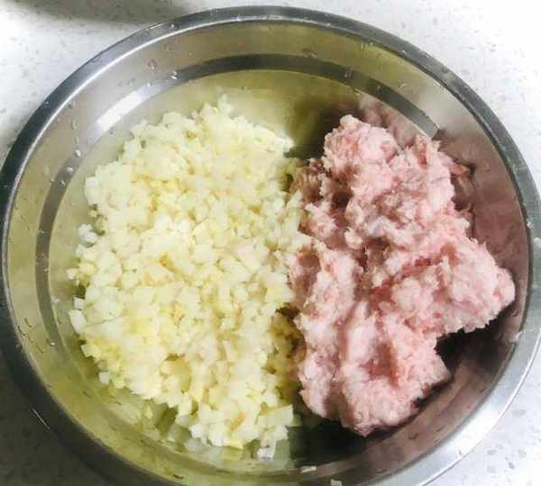 第8步、豬肉也攪碎與筍末放一起。