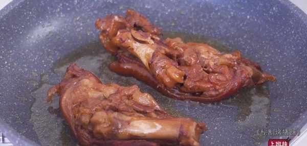 但我們要做烤豬蹄,分享一個快速還能保持湯汁做法就是用平底鍋,隻要把表皮煎得焦脆,也會有烤豬蹄的口感,撒上滿滿的燒烤料,再煎一煎就完成瞭!
