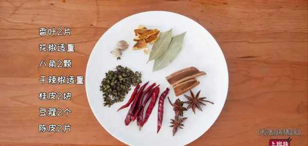 為瞭讓豬蹄更軟爛,還需要燜燉一下,今天做的是紅酒豬蹄,香料肯定少不瞭:香葉2片、花椒適量、八角2顆、幹辣椒適量、桂皮2塊、豆蔻2個、陳皮2片。