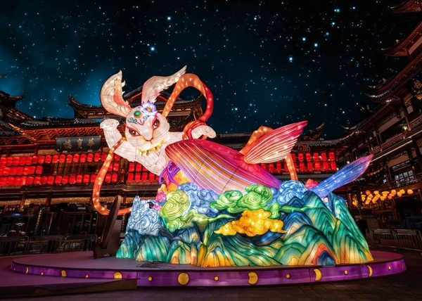 於本屆中國品牌日上展示的國傢級非遺項目——豫園燈會,便是豫園股份東方生活美學戰略的重要成果之一。2022年底至2023年初,上海著名的文化商業地標豫園商城舉辦瞭第28屆豫園燈會。不同於以往,本屆豫園燈會對於中國文化進行瞭更為深度的挖掘和年輕化的詮釋,聚焦《山海經》這一中國上古神話巨作,以現代燈彩方式演繹,並通過多媒體、實景結合AR增強現實等技術加持,在上海鬧市中呈現瞭“山海奇豫記”的奇幻世界。