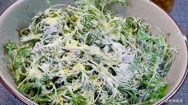 3、白蒿蒸熟後,一定要及時吃完,如果放瞭幾個小時,白蒿也會凝固成一團,導致白蒿不好吃。