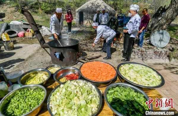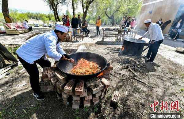 5月10日,新疆烏魯木齊市水磨溝區舉辦“農傢樂”烹飪技能競賽,來自該市石人子溝景區的眾多“農傢樂”大廚參與其中,烹制大盤雞、抓飯、粉湯等新疆民間美食,相互交流比拼廚藝。據介紹,石人子溝景區距離烏魯木齊市20餘公裡,因距離城市較近,成為市民節假日休閑觀光旅遊的首選地之一。隨著氣溫逐步升高,景區內由當地農牧民經營的“農傢樂”餐廳已提前準備,迎接旅遊旺季到來。
