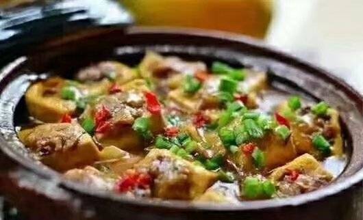北豆腐500g、香菇適量、肉泥適量、蒜適量、蔥適量、紅椒適量