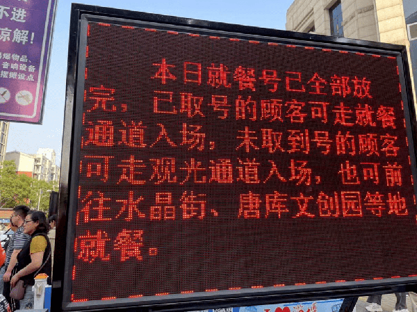 4月27日試營業當天,我們趕到瞭淄博燒烤城牧羊村總店,門前的電子屏幕顯示早上9點就餐號已經取完。